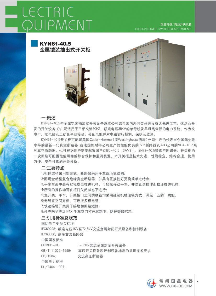 在生產(chǎn)電器元件的基礎(chǔ)上,我公司相繼開發(fā)了高低壓電器成套開關(guān)設(shè)備,其中包括:YBWW1系列無飛弧智能型組合(箱)式預(yù)裝變電站;KYN61-40.5交流金屬封閉開關(guān)設(shè)備;KYN28-24/3150-31.5鎧裝移開式交流金屬封閉開關(guān)設(shè)備;KYN28-12鎧裝移開中置式交流金屬封閉開關(guān)柜;XGN15-12單元六氟化硫環(huán)網(wǎng)柜;XGN2-12固定式高壓環(huán)網(wǎng)柜;MNS、GCS、GCK、GBD、GGD低壓開關(guān)柜;防腐、防爆動力箱、配電箱、檢修箱;各種非標動力箱、控制屏,產(chǎn)品均獲CCC認證,并引進英國技術(shù)開發(fā)防腐型GCF-2500低壓抽屜式柜,國內(nèi)首創(chuàng)。