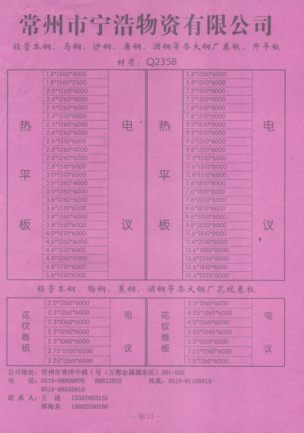 地址:常州市青洋中路1號(hào)萬(wàn)都金屬城東區(qū)501、502 法人代表:刑海東 電話(huà):0519-88809876 傳真:0519-81185810