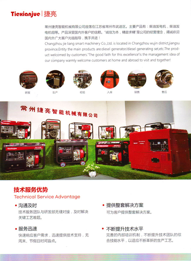 常州捷亮智能機械有限公司座落在江蘇省常卅市武進區(qū)。王要產(chǎn)品有:柴油發(fā)電機,柴油發(fā)電機組等。產(chǎn)品深受國內(nèi)外客戶的信賴!罢\信為本,精益求精”是公司的經(jīng)營理念,竭誠歡迎國內(nèi)外廣大客戶光臨指導,攜手共進!