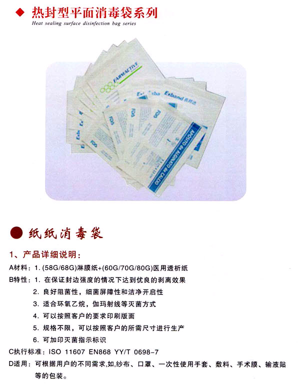 常州市飛利達醫(yī)用制品有限公司專業(yè)生產各類一次性使用醫(yī)療器械包裝用品(滅菌袋、消毒袋)的企業(yè)。公司位于中國江南魚米之鄉(xiāng)“常州”。交通十分便利,優(yōu)越的經(jīng)濟基礎和濃郁的人文環(huán)境,為企業(yè)的發(fā)展提供了強有力的保障。飛利達公司具有起點高,設備先進,技術領先的優(yōu)勢。以服務國內市場為起點,瞄準國際市場為目標,通過IS09001:2015標準認證。 公司現(xiàn)在占地10000平方米,建筑面積6000平方米,擁有了10萬級潔凈車間700平方米。公司擁有先進的大型涂膠生產線和電腦光控分切機和多功能電腦光控制袋流水線以及多臺適用印刷多類醫(yī)用透析紙的柔性版印刷機,能為客戶提供品質卓越的產品(滅菌袋、消毒袋);完備而精密的檢測檢驗儀器和具有執(zhí)行資格的專業(yè)檢驗人員為公司的產品質量符合國際標準和國家標準提供了強有力的保障。 公司能根據(jù)客戶的要求分別生產出適合于環(huán)氧乙烷、輻照和等離子、蒸汽等不同的消毒,滅菌方式的各種規(guī)格的醫(yī)用包裝袋。該產品(滅菌袋、消毒袋)不僅具有良好的熱封效果和干凈完全的剝離效果,同時更具有單向的細菌阻隔性和透析性,從而保證了產品的滅菌效果和透析,l生能,贏得了廣大醫(yī)療器械生產生的一致認可。