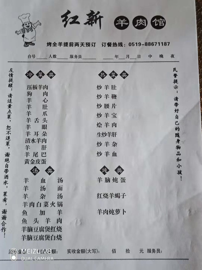 武進區(qū)鄭陸寧河全羊館從事羊肉經(jīng)營四十年,羊館經(jīng)營面積300平方米,從羊頭到羊蹄都能做菜:羊頭、羊排、羊拐、羊蹄、羊耳,其他還有羊羔,烤羊,羊湯面,清水羊肉,全羊宴。羊肉湯只是白煮,湯白而濃稠,肉爛味鮮,還不腥不油不膩。你若細看菜單就能發(fā)現(xiàn),全羊席幾乎都是拿燉湯帶出來的,這更加顯示出羊肉湯的魅力。