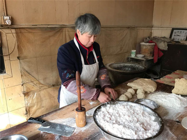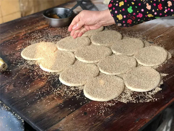 常州大麻糕已經(jīng)有150多年的歷史,常武各地的麻糕師傅、麻糕店數(shù)不勝數(shù),但今天小編要帶大家去的是一家隱藏在背街小巷里,至今仍保持著傳統(tǒng)手工制法的麻糕店。 沈正昌麻糕店位于遙觀鎮(zhèn)東街、國(guó)寧寺旁,雖然店門口連個(gè)招牌都沒有,卻不妨礙四面八方的食客慕名而來,大伙看中的正是這些純手工制作,原汁原味的大麻糕。如今的店主沈國(guó)平已經(jīng)是沈家第四代做麻糕的傳人了。 秉承著爺爺那輩傳下來的手藝,他們制作的麻糕塊大實(shí)誠(chéng),用料講究,口感酥軟,深受四周鄉(xiāng)鄰的歡迎!拔覀冞是老法,酥是生板油身擦的,餡里也是生板油摻糖,是真的綠色產(chǎn)品,沒有添加劑,沒有防腐劑,也不用甜蜜素,都是真家伙! 每天凌晨一兩點(diǎn)鐘,沈國(guó)平就要去采買當(dāng)天最新鮮的豬板油,回來清理干凈,和上面粉攪拌均勻,制成面團(tuán)。麻糕的制作主要由沈國(guó)平妻子和兩個(gè)姊妹來完成。揉面、搓胚子、配油酥,按餡心、搟均勻,整個(gè)過程行云流水,連貫無比。 當(dāng)爐火燒得正旺,溫度能高達(dá)近300度,沈國(guó)平就上場(chǎng)了,赤手空拳,一撈一貼,一秒鐘的功夫,就把麻糕貼到了桶壁上。不過幾分鐘的功夫,麻糕就出爐了。經(jīng)過炭火爐子烤出來的,比一些電烤爐烤出的更香、更脆。