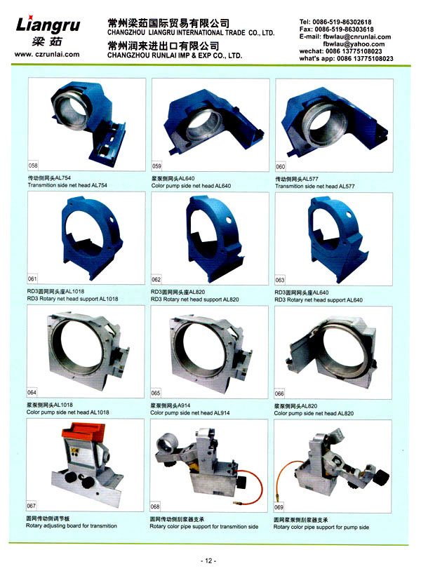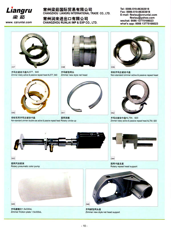 常州梁茹國際貿易有限公司是國內外雙用鋏,T型刮漿片,感光膠, 640軸承,剝邊器,阿托斯滑塊,印花用漿泵,針板座, 印花用圓網(wǎng),印花圓筒網(wǎng),華磁棒,針板,毛刷輪,定型機鏈條, 切布刀片的主要供應商 。我們公司位于常州市,臨近上海,交通十分便利。 我們注重產(chǎn)品質量,價格優(yōu)惠,這是我們成功的原因所在,我司跟配套廠家緊密合作,不斷推出新產(chǎn)品,年銷售額逐年增加。我們的產(chǎn)品涉及化工、機械、紡織印染機械配件。我們熱忱歡迎國內外客戶與我司洽談業(yè)務,相信在我們的熱情服務之下能合作成功!