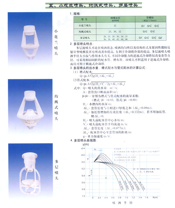 我廠專業(yè)生產(chǎn)各種環(huán)保設(shè)備配件,“鶴清”牌注冊商標(biāo)水處理設(shè)備及配件為“江蘇省市場公認(rèn)名牌產(chǎn)品”。產(chǎn)品銷往國內(nèi)二十多個省、市、自治區(qū),并遠銷蘇丹、澳大利亞等國,深得用戶好評。二十多年來,我廠以“科學(xué)管理,技術(shù)領(lǐng)先,質(zhì)量第一,顧客至上”為宗旨,不斷創(chuàng)新。隨著科技的發(fā)展,我廠在中國電機工程協(xié)會冷卻塔專業(yè)委員會、中國水利水電科學(xué)研究院冷卻水研究所的大力支持和幫助下,產(chǎn)品有了很大的發(fā)展,并獲得了改進型噴濺裝置和均濺式噴濺裝置兩項專利。最近本廠又研制生產(chǎn)了多種效率更高的塔用新型填料和收水器。塔用噴頭、塔芯填料、收水器、污水處理填料、濾水帽、曝氣頭等已有兩百多個品種,可供不同用戶選用。