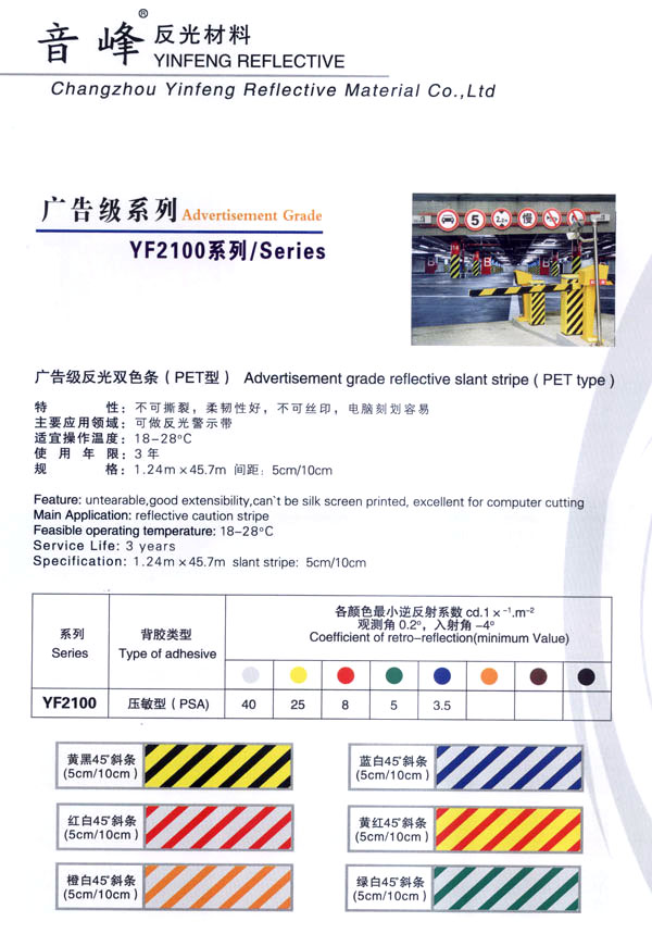 公司主生產(chǎn):廣告級(jí)反光膜、工程級(jí)反光膜、車(chē)牌級(jí)反光膜、高強(qiáng)級(jí)反光膜、廣告級(jí)反光雙色條、發(fā)光膜、噴繪反光膜、晶彩格、電信電力反光膜,鍍鋁膜等等..........根據(jù)國(guó)家指令法規(guī):反光材料的領(lǐng)域,如公路標(biāo)志、標(biāo)牌、標(biāo)線、礦山、鐵路等......... 反光膜廣泛應(yīng)用于各種廣告標(biāo)志牌,公路鐵路的導(dǎo)向牌、指示牌、地名牌、車(chē)牌,道路交通標(biāo)志,物業(yè)小區(qū)標(biāo)志,臨時(shí)施工標(biāo)志,廣告宣傳、安全防護(hù)、高等級(jí)公路的各種警示標(biāo)語(yǔ),標(biāo)識(shí)牌等。