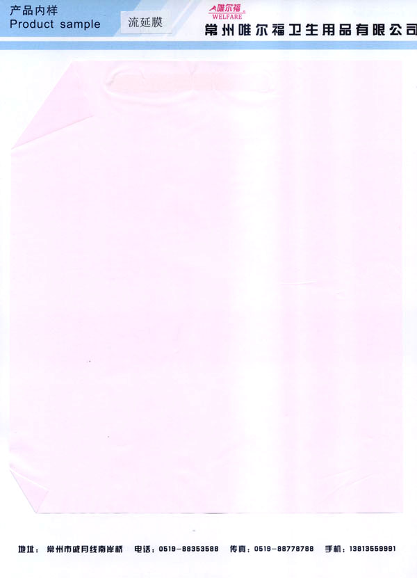 常州唯爾福衛(wèi)生用品有限公司是一家獨(dú)資企業(yè),地處滬寧高速、沿江高速,常州橫山出口交匯處,交通便利、環(huán)境清新。 常州唯爾福衛(wèi)生用品有限公司創(chuàng)建于1998年,公司占地2.5萬(wàn)平方米,員工165人。 公司現(xiàn)有各類生產(chǎn)線20條。公司現(xiàn)已發(fā)展成為各項(xiàng)管理先進(jìn)、技術(shù)力量雄厚,全年流延膜產(chǎn)量9000噸,華東地區(qū)最具規(guī);牧餮幽どa(chǎn)基地。 公司專業(yè)生產(chǎn)9—80克流延膜,15—80克透氣膜,及各類印刷膜。優(yōu)極柔版印刷,各種復(fù)合膜。廣泛適用于婦女衛(wèi)生用品、嬰兒紙尿褲、成人紙尿褲、成人床墊、寵物墊、醫(yī)用薄膜制品等領(lǐng)域。多年來(lái)公司致力于研究和開(kāi)發(fā)適應(yīng)市場(chǎng)需求的新產(chǎn)品來(lái)滿足廣大客戶的需求。