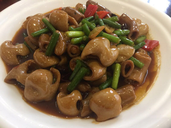 橫林有個地兒叫楊歧村,有句老話叫“上不靠橫林,下不靠洛社”,說的就是那里。 楊歧村過去幾十米就是無錫地界,今天小編推薦的土菜館「三妹農(nóng)家小吃」就在那里。 當小編一路七拐八拐,中午11點半到達那里時,門面雖然很簡陋,但店門口已然停了好多輛車。剛進入店門,就發(fā)現(xiàn)這家店人氣好旺,十幾桌基本都坐滿了。(所以說,人不可貌相,餐館也是如此) "三妹,三妹。⒌昀锟腿私袉韭暡唤^于耳,原來老板娘叫楊三妹啊。你們忙,我們先隨便看看。 過大廳到后堂就是冷菜間,里面有白切草雞、鹵豬干、拌馬蘭等十幾種土菜,尤其那草雞濃郁的香味,讓小編肚子叫得咕咕響。 往前是活貨區(qū),各種鮮魚活蝦一格一格區(qū)分養(yǎng)著,再里面是開放式廚房,每個客人都可以看到,選用的放心食材和調料。  吃貨老板娘,楊三妹,三妹,從小到大一直有個嗜好,就是愛美味,不光喜歡吃,還喜歡鉆研做。2010年,「三妹小吃」開張,因為獨具特色,在楊歧這個小村一炮而紅。要說楊三妹最拿手的菜是什么,當然是酒糟扣肉。 糟本來就是一種做米酒留下來后,用來吊燒酒的。但是我們常州人很聰明,把糟和肉放在一起,做成一道美味菜,叫酒糟扣肉。 楊三妹的酒糟扣肉之所以有名,得益于母親的悉心傳授。記憶里小辰光,她母親做的扣肉總比別人家的香。「糟」,釀完酒后留下的糟,會與炒熟的新糯米,拌和在一起,陳一年。「肉」,選擇本地養(yǎng)殖的良種豬,沒有臊味。 長大后,她把記憶里的美味延續(xù)了下來。精益求精的她,對扣肉的制作過程要求很嚴格。別人家制作都是把肉直接切大塊,排碗,熬槽,蒸爛。三妹說,這樣烹制,肉汁的鮮美會流失很多,口感減分不少。她的做法是精選新鮮豬五花,整大塊清蒸,保留肉汁的鮮美,之后再切塊紅燒,排碗,熬糟,澆蓋,再蒸。 三妹酒糟扣肉,出鍋后,色澤紅潤,味道鮮美。既有酒的香味,又有肉的鮮美,而且經(jīng)過蒸煮后,油脂都出來了,爽口不油膩。