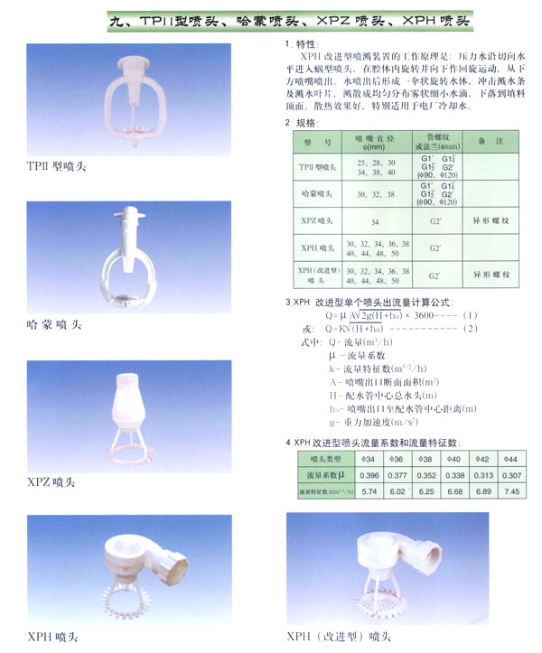我廠專業(yè)生產(chǎn)各種環(huán)保設(shè)備配件,“鶴清”牌注冊商標(biāo)水處理設(shè)備及配件為“江蘇省市場公認(rèn)名牌產(chǎn)品”。產(chǎn)品銷往國內(nèi)二十多個省、市、自治區(qū),并遠(yuǎn)銷蘇丹、澳大利亞等國,深得用戶好評。二十多年來,我廠以“科學(xué)管理,技術(shù)領(lǐng)先,質(zhì)量第一,顧客至上”為宗旨,不斷創(chuàng)新。隨著科技的發(fā)展,我廠在中國電機(jī)工程協(xié)會冷卻塔專業(yè)委員會、中國水利水電科學(xué)研究院冷卻水研究所的大力支持和幫助下,產(chǎn)品有了很大的發(fā)展,并獲得了改進(jìn)型噴濺裝置和均濺式噴濺裝置兩項專利。最近本廠又研制生產(chǎn)了多種效率更高的塔用新型填料和收水器。塔用噴頭、塔芯填料、收水器、污水處理填料、濾水帽、曝氣頭等已有兩百多個品種,可供不同用戶選用。