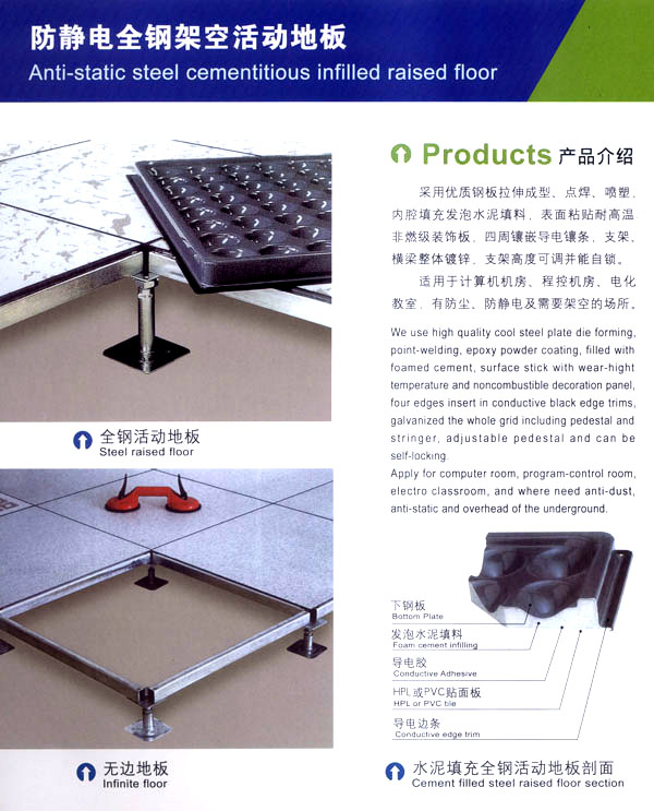 常州天馳活動(dòng)地板有限公司始創(chuàng)于2010年,原身是常州市武進(jìn)區(qū)橫林天馳機(jī)房地板廠,地處橫林工業(yè)園區(qū),交通便捷。 公司主要生產(chǎn)和銷售各種機(jī)房地板,自創(chuàng)立以來,以品質(zhì)第一,信譽(yù)第一,服務(wù)第一的理念堅(jiān)持做全國(guó)最優(yōu)質(zhì)量。 防靜電高架活動(dòng)地板是計(jì)算機(jī)行業(yè)發(fā)展起來的新型鋪地材料,隔離了潮氣,靜電灰塵。最重要的是解決了綜合布線問題,無需預(yù)埋管線,可隨時(shí)拆卸,搬移,保證了資訊設(shè)備完整的優(yōu)點(diǎn),適應(yīng)了智能化樓宇中信息自動(dòng)化技術(shù)對(duì)所處環(huán)境的特定要求,避免了廣大客戶的雙重投資,使現(xiàn)代化辦公程度更加高效,辦公場(chǎng)所更加舒適。 公司專業(yè)生產(chǎn)“天馳”系列活動(dòng)地板,符合國(guó)家安全要求,種類完備多樣,其中防靜電瓷質(zhì)高架通路地板除具有普通瓷質(zhì)的裝飾和實(shí)用性外,其耐磨,防水,防火功能優(yōu)于其他同類產(chǎn)品,深受客戶歡迎。 公司大力發(fā)展國(guó)內(nèi)外銷售業(yè)務(wù),多次中標(biāo)國(guó)內(nèi)重點(diǎn)裝飾工程,例:湖南電視臺(tái),寧波縣變電站,鞍山市120急救指揮中心等。 公司將一如既往開發(fā)和制造一流的產(chǎn)品,愿與廣大有識(shí)之士合作發(fā)展,共創(chuàng)美好未來!