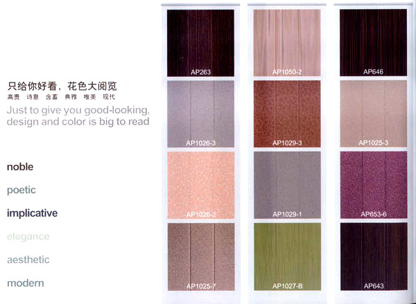 常州愛普裝飾材料有限公司位于美麗富饒的江蘇省常州市,是一家專業(yè)從事墻板設(shè)計與生產(chǎn)的企業(yè)。年生產(chǎn)墻板300萬平方米。"愛普墻板"是我公司生產(chǎn)的一種新型墻面裝飾材料,產(chǎn)品由人造金剛石耐磨層、三聚氰胺裝飾紙、EO級HDF材料、高檔防潮平衡紙,采用先進的德國生產(chǎn)設(shè)備,通過一流的生產(chǎn)工藝--一次性熱壓技術(shù)壓貼成型。具有環(huán)保、耐磨、防刮擦、防潮、阻燃、隔音、保溫、抗沖擊、抗污等優(yōu)點。經(jīng)中華人民共和國專利認(rèn)定為 專利產(chǎn)品(專利號:ZL200820127448.X),為國際首創(chuàng),其知識產(chǎn)權(quán)受國家法律保護。 愛普墻板經(jīng)建科院權(quán)威部門檢測,其所有物質(zhì)性能指標(biāo)均符合國家建材行業(yè)標(biāo)準(zhǔn),產(chǎn)品遠(yuǎn)銷美國、加拿大、澳大利亞、土耳其、俄羅斯、馬來西亞等國家和地區(qū),以其優(yōu)秀的產(chǎn)品與新穎的設(shè)計贏得了廣泛贊譽,經(jīng)歷五年的發(fā)展,愛普裝飾材料公司已成為墻板行業(yè)的領(lǐng)軍企業(yè)。 公司以"開拓、競爭、誠信、服務(wù)"的企業(yè)精神,"本著質(zhì)量第一、用戶第一"的原則,依托先進的工藝裝備、雄厚的技術(shù)力量,完善的企業(yè)管理制度,竭誠為用戶提供優(yōu)質(zhì)的產(chǎn)品與良好的服務(wù)。