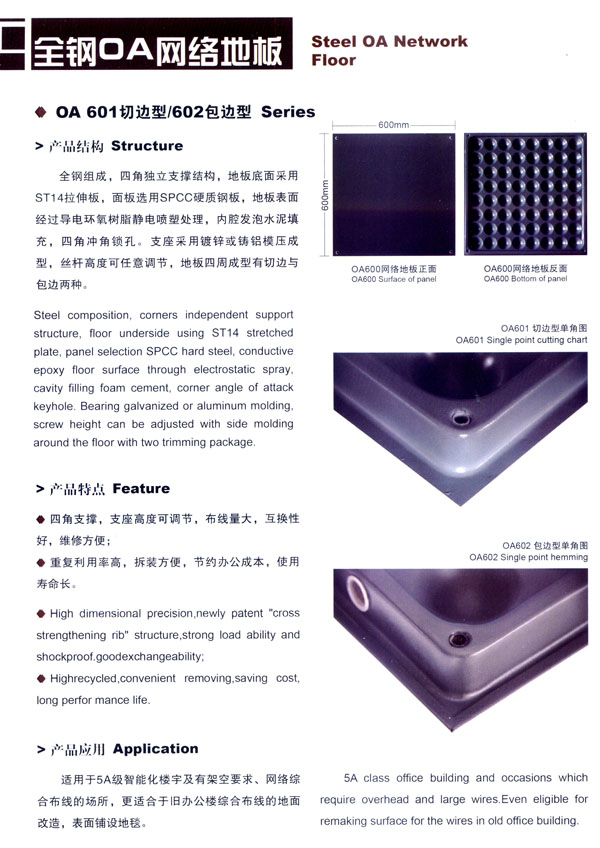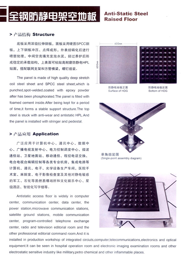 常州市蘇杰機(jī)房地板有限公司是高架地板專業(yè)制造商,專業(yè)從事防靜電地板、OA網(wǎng)絡(luò)地板等各種系列高架地板的研發(fā)、制造和銷售,并提供各種機(jī)房地面和智能化辦公區(qū)地面的整體解決方案。 公司廠區(qū)面積30000平方米,擁有全鋼地板生產(chǎn)線兩條,木基、硫酸鈣基地板生產(chǎn)線各一條,年綜合產(chǎn)能100萬平方米。生產(chǎn)蘇杰牌防靜電地板系列和蘇杰牌網(wǎng)絡(luò)地板系列,主要產(chǎn)品有全鋼防靜電架空地板、全鋼OA網(wǎng)絡(luò)地板、瓷磚貼面防靜電地板、硫酸鈣防靜電地板、木基防靜電地板、鋁合金防靜電地板、防靜電通風(fēng)地板等。 蘇杰人秉承“科技先導(dǎo)、市場(chǎng)為本、持續(xù)發(fā)展”的企業(yè)發(fā)展觀,堅(jiān)持“以先進(jìn)技術(shù)裝備為基礎(chǔ),以現(xiàn)代化管理為依托,以專業(yè)化服務(wù)為保障”的宗旨,使公司不斷發(fā)展壯大成為現(xiàn)代化的企業(yè)。 蘇杰人堅(jiān)持“嚴(yán)謹(jǐn)思考、嚴(yán)密操作、嚴(yán)格檢查、嚴(yán)肅驗(yàn)證”的品質(zhì)理念和“以客戶為中心”的服務(wù)理念,始終致力于產(chǎn)品的技術(shù)創(chuàng)新和質(zhì)量創(chuàng)優(yōu),為用戶提供優(yōu)質(zhì)的產(chǎn)品、合理的價(jià)格和貼心的服務(wù)。 常州市蘇杰機(jī)房地板有限公司將不斷開發(fā)和制造一流的產(chǎn)品,吸引和培養(yǎng)一流的人才,提供和完善一流的服務(wù),樹立和保持一流的形象,與時(shí)俱進(jìn),共謀發(fā)展。