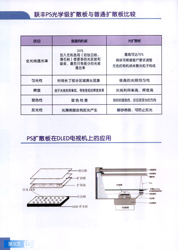 常州市聯(lián)豐(鏡面輥)集團(tuán)成立于2000年,是國(guó)內(nèi)從事板片材行業(yè)輥筒制造的專(zhuān)業(yè)企業(yè)。聯(lián)豐集團(tuán)全資子公司常州市聯(lián)豐光電科技有限公司成立于2013年6月。聯(lián)豐光電專(zhuān)業(yè)從事光學(xué)級(jí)擴(kuò)散板的研發(fā),生產(chǎn)和銷(xiāo)售。擁有各類(lèi)高級(jí)技術(shù)研發(fā)人員10人,生產(chǎn)、管理及銷(xiāo)售人員60人。公司廠房占地面積2萬(wàn)平方米,工廠擁有十萬(wàn)級(jí)凈化車(chē)間,能有效滿足光學(xué)領(lǐng)域擴(kuò)散板生產(chǎn)的環(huán)境要求。公司已經(jīng)申報(bào)江蘇省高新技術(shù)企業(yè)。 公司現(xiàn)擁有全新進(jìn)口PS專(zhuān)用擴(kuò)散板材生產(chǎn)線兩條,月生產(chǎn)能力650噸PS擴(kuò)散板。日本進(jìn)口協(xié)榮裁切一體機(jī)兩臺(tái),月加工能力50萬(wàn)片(32寸擴(kuò)散板)。 聯(lián)豐生產(chǎn)的VFP系列PS擴(kuò)散板能廣泛應(yīng)用于直下式LED,CCFL液晶電視背光模組。產(chǎn)品在很多國(guó)內(nèi)一線TV的背光模組上使用。產(chǎn)品具有高輝度,高擴(kuò)散性,特別適用于超薄背光模組的擴(kuò)散部件,能有效降低成本,節(jié)約能源。 由于LED照明行業(yè)的興起,公司特別針對(duì)于LED面板燈和筒燈開(kāi)發(fā)的LFP系列擴(kuò)散板,在滿足透光率條件下,能最大限度提高光通量,從而增加燈具的光效,受到廣大客戶的好評(píng)。
