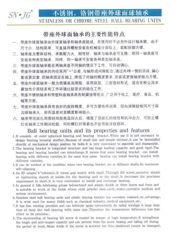 常州市武進蘇南軸承有限公司是生產(chǎn)鋼球及帶座外球面軸承的專業(yè)工廠,主要生產(chǎn)蘇南牌“SN”不銹鋼球、鉻鋼鋼球,以及不銹鋼、鉻鋼UC、UCX、UK、HC、SB、SA、SER、UOOO、KOOO及其它非標(biāo)系列各類帶座外球面軸承、偏心套、緊定套等產(chǎn)品。本廠生產(chǎn)規(guī)格有軸承鋼球0.5-150m/m,碳鋼球0.5-150m/m,不銹鋼球0.8-50m/m,同時定做各種特殊規(guī)格的不銹鋼球、銅球、陶瓷球等。為廣大用戶提供品質(zhì)優(yōu)良,規(guī)格齊全,價格合理的各種鋼球。 本公司位于常州南部,錫宜高速公路串境而過, 交通便利。南瀕風(fēng)景秀麗的太湖,沿湖丘陵地帶人文景觀豐富,為常州市武進區(qū)太湖旅游度假區(qū) 。本廠環(huán)境優(yōu)美,具有良好的生產(chǎn)環(huán)境,我們竭誠歡迎國內(nèi)外的朋友進行廣泛多樣的經(jīng)濟合作交往和貿(mào)易合作,并為你提供優(yōu)良的服務(wù)。 本公司技術(shù)力量雄厚,工藝裝備先進,檢測手段完備,產(chǎn)品質(zhì)量穩(wěn)定,使用性能各項指標(biāo)都達到國際先進水平,產(chǎn)品主要銷往美國、法國、德國、日本、意大利、澳大利亞、韓國、加拿大、及東南亞等國家和地區(qū)。本公司的“SN”商標(biāo)鋼球及帶座外球面軸承已贏得國內(nèi)外廣大用戶的信賴。 本公司具有外貿(mào)自營出口權(quán),并于2002年9月通過ISO9001-2000版質(zhì)量體系認證,于2004年8月通過“CQC”產(chǎn)品質(zhì)量認證。