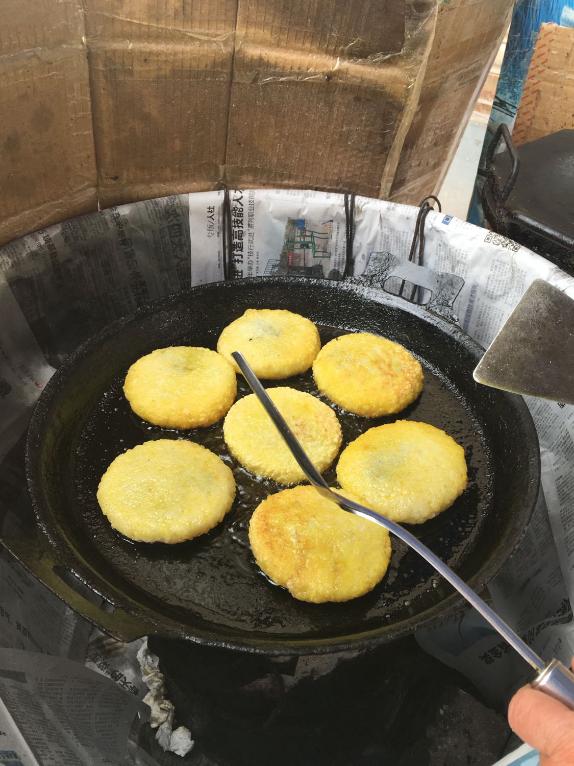 魁元面館,橫山橋江南路,沿街的店鋪。老板娘徐文霞,從公婆手里接過這個(gè)店面已有20多年。最具特色的菜品是肉圓跟大排。每天凌晨3點(diǎn)就要起來做準(zhǔn)備,菜都是現(xiàn)燒現(xiàn)賣。 特色小菜: 肉圓:有人特意遠(yuǎn)道而來打包走 大排面:每天能賣出100來塊大排 大腸 雞蛋:每天煎的雞蛋就差不多300來個(gè) 小餛飩、大餛飩 限時(shí)供應(yīng): 咸鴨蛋、肉粽、蛋黃粽:每天都要包,放爐子燒,在端午前后供應(yīng),很好吃。每天都有人打包幾個(gè)咸鴨蛋或者粽子拿回家,送人 油酥餅(圖3-4)、糍團(tuán)餅(圖5-6)、韭菜餅(圖7-8) 油酥餅每天晚上做,涼了更好吃,更酥更脆,里面都是很香的黑芝麻;糍團(tuán)餅,每天中午擺攤熱了煎鍋開始煎,糯米做成,用菜籽油煎至金黃,餡兒是黑芝麻瓜子仁;韭菜餅是最受歡迎的,每天都有好多人排隊(duì)來買。供應(yīng)時(shí)間:每年的4月份到11月份 下午1點(diǎn)到5點(diǎn)半。