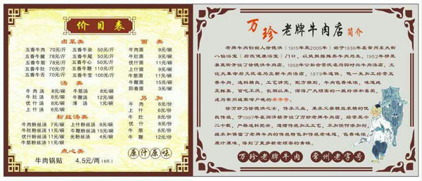 老牌牛肉創(chuàng)始人徐德洪始于1935年在常州東大街八仙浴室門口,以挑擔(dān)擺攤賣牛肉為生,1952年移至縣直街開(kāi)設(shè)了徐德洪牛肉店。1958年公私合營(yíng)改名為四時(shí)興牛肉店。文化大革命后又改名為立新牛肉店,1979年退休。他一生加工經(jīng)常五香牛肉,選料精良,工藝講究,配方獨(dú)到,牛肉色香味濃,味道純正鮮美,百吃不厭。長(zhǎng)期以來(lái),深得廣大顧客的一致好評(píng)和喜愛(ài),成為常州城家喻戶曉的老字號(hào)。 徐萬(wàn)珍乃徐德洪之女,傳承父業(yè),秉承父親精益求精的優(yōu)良傳統(tǒng),于1997年在同濟(jì)橋開(kāi)設(shè)了萬(wàn)珍老牌牛肉店,經(jīng)營(yíng)至今二十載,嚴(yán)格選料把關(guān),遵循傳統(tǒng)加工工藝,不加工任何添加劑,繼承和保留了老牌牛肉的傳統(tǒng)特色和傳統(tǒng)老味道,色香味濃,原汁原味,得到了更多新老顧客的青睞。