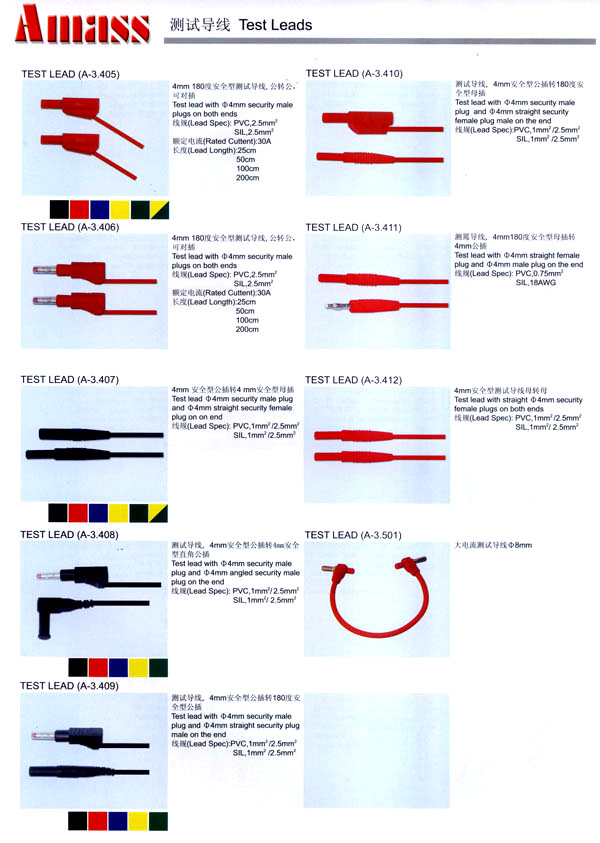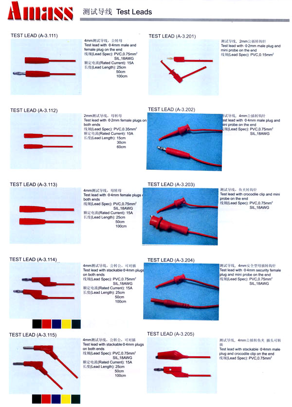 本公司專業(yè)生產(chǎn)各類香蕉插頭,香蕉插座,接線柱,電瓶夾,鱷魚夾,測試導線,測試筆等。產(chǎn)品分2mm/2.5mm/3mm/3.5mm/4mm五大系列,百余種款式, 各種香蕉插廣泛用于儀器、儀表、電力測試、教學、玩具,視聽設備、醫(yī)療儀器,保健產(chǎn)品等領域。公司技術力量雄厚,生產(chǎn)工藝先進,產(chǎn)品遠銷港、臺、歐美,并與飛利浦等國際品牌配套。公司本著精益求精的理念,歡迎新老客戶光臨。 我們擁有資深的工程師和豐富的電子產(chǎn)品銷售經(jīng)驗,專業(yè)生產(chǎn)各類電子接插件產(chǎn)品。 香蕉插頭,香蕉插座,電瓶夾,鱷魚夾等品種齊全、 質(zhì)量可靠,致力服務于通訊、數(shù)據(jù)通信、消費類電子產(chǎn)品、計算機和計算機外圍設備以及工業(yè)應用等領域,能給客戶提供全面采購解決方案。 我們秉承穩(wěn)健作風、誠實經(jīng)營、合理價格、完善服務的宗旨,在全體客戶的支持下,公司不斷創(chuàng)新進取,業(yè)績蒸蒸日上,已與數(shù)十家電子零件制造商及其分支機構(gòu)建立密切合作關系,在國內(nèi)擁有數(shù)百家固定客戶。
