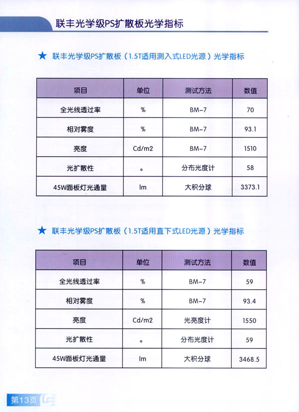 常州市聯(lián)豐(鏡面輥)集團成立于2000年,是國內(nèi)從事板片材行業(yè)輥筒制造的專業(yè)企業(yè)。聯(lián)豐集團全資子公司常州市聯(lián)豐光電科技有限公司成立于2013年6月。聯(lián)豐光電專業(yè)從事光學級擴散板的研發(fā),生產(chǎn)和銷售。擁有各類高級技術(shù)研發(fā)人員10人,生產(chǎn)、管理及銷售人員60人。公司廠房占地面積2萬平方米,工廠擁有十萬級凈化車間,能有效滿足光學領域擴散板生產(chǎn)的環(huán)境要求。公司已經(jīng)申報江蘇省高新技術(shù)企業(yè)。 公司現(xiàn)擁有全新進口PS專用擴散板材生產(chǎn)線兩條,月生產(chǎn)能力650噸PS擴散板。日本進口協(xié)榮裁切一體機兩臺,月加工能力50萬片(32寸擴散板)。 聯(lián)豐生產(chǎn)的VFP系列PS擴散板能廣泛應用于直下式LED,CCFL液晶電視背光模組。產(chǎn)品在很多國內(nèi)一線TV的背光模組上使用。產(chǎn)品具有高輝度,高擴散性,特別適用于超薄背光模組的擴散部件,能有效降低成本,節(jié)約能源。 由于LED照明行業(yè)的興起,公司特別針對于LED面板燈和筒燈開發(fā)的LFP系列擴散板,在滿足透光率條件下,能最大限度提高光通量,從而增加燈具的光效,受到廣大客戶的好評。