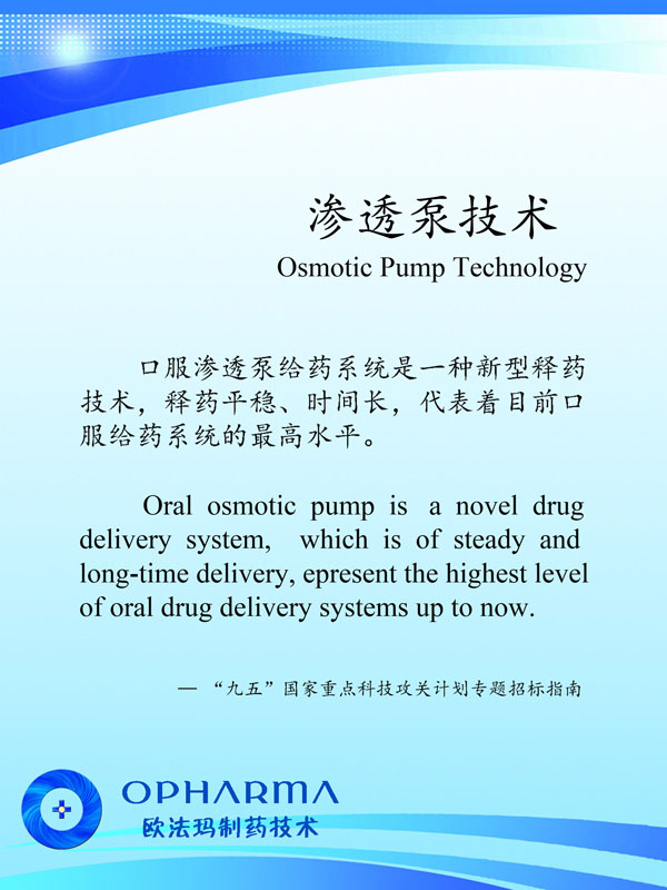 常州歐法瑪制藥技術(shù)有限公司位于長江三角洲黃金腹地——常州。地理位置優(yōu)越、交通便捷,由鐵路、公路、水路、民航形成了一張立體交叉的交通網(wǎng)絡。 公司創(chuàng)建于2013年,是一家集研發(fā)、生產(chǎn)和銷售為一體,專業(yè)從事高速激光打孔機、滲透泵制劑研發(fā)、生產(chǎn)和銷售。目前公司擁有員工20人,科技研發(fā)和技術(shù)人員占員工總數(shù)80%以上,其中本科以上學歷占80%以上。 公司始建以來,以前瞻的科學規(guī)劃,通過自主研發(fā),解決了高速激光打孔機諸多的世界難題,使之達到40片/秒以上且精確打孔的國際領先水平;同時開發(fā)廢片自動識別、剔除功能,以滿足客戶的實際所需。公司與瑞士等國家研究機構(gòu)的科技合作,以高速激光打孔機為基礎,建設了滲透泵制劑研發(fā)和中試生產(chǎn)車間,開發(fā)了多種藥物的滲透泵制劑,形成了從關(guān)鍵設備研制,新制劑開發(fā)、工藝配套,到批量生產(chǎn)測試的滲透泵制劑開發(fā)全過程技術(shù)團隊和研究設施。公司瞄準現(xiàn)代新型釋藥系統(tǒng),吸收國內(nèi)外高端人才,努力開拓控緩釋技術(shù)、靶向給藥技術(shù)及智能給藥技術(shù)。 2013年公司被評為黑馬大賽“創(chuàng)業(yè)組50強”、“領軍人才創(chuàng)業(yè)重點企業(yè)”;2014公司通過了IS09001-2008質(zhì)量管理體系認證、CE認證、江蘇省質(zhì)量信得過企業(yè)。