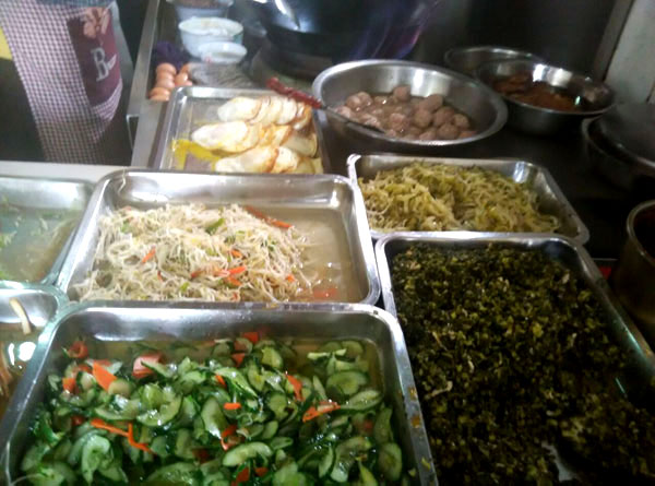 魁元面館,橫山橋江南路,沿街的店鋪。老板娘徐文霞,從公婆手里接過這個店面已有20多年。最具特色的菜品是肉圓跟大排。每天凌晨3點就要起來做準備,菜都是現(xiàn)燒現(xiàn)賣。 特色小菜: 肉圓:有人特意遠道而來打包走 大排面:每天能賣出100來塊大排 大腸 雞蛋:每天煎的雞蛋就差不多300來個 小餛飩、大餛飩 限時供應(yīng): 咸鴨蛋、肉粽、蛋黃粽:每天都要包,放爐子燒,在端午前后供應(yīng),很好吃。每天都有人打包幾個咸鴨蛋或者粽子拿回家,送人 油酥餅(圖3-4)、糍團餅(圖5-6)、韭菜餅(圖7-8) 油酥餅每天晚上做,涼了更好吃,更酥更脆,里面都是很香的黑芝麻;糍團餅,每天中午擺攤熱了煎鍋開始煎,糯米做成,用菜籽油煎至金黃,餡兒是黑芝麻瓜子仁;韭菜餅是最受歡迎的,每天都有好多人排隊來買。供應(yīng)時間:每年的4月份到11月份 下午1點到5點半。