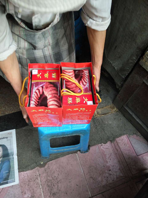 常州人夏亞寶的大麻糕技術(shù)是上世紀(jì)80年代更著新橋麻糕店的師傅周金生學(xué)的,1999年開店至今,在附近一帶做得小有名氣,向?qū)W校供應(yīng)麻糕,整整6年。 “做大麻糕太辛苦,半夜爬起來準(zhǔn)備熱爐子、和面、做餡,年輕人吃不了這苦,15年我都沒請人,和老婆一起打過來的!毕膩唽氈钢直凵系臓C傷的痕跡說,能堅(jiān)持烤桶制作大麻糕的真心不多了。夏亞寶的烤桶是自制的,爐心常州買不到,他托人從無錫買來,15年前85元一個,前年漲到150元!翱就暗臓t心其實(shí)就是以前船上人家用的行爐”,去底后鑿個洞,然后外面加上隔熱材料,最后貼上鐵片”。 15年,這已經(jīng)是第三只貼桶了。