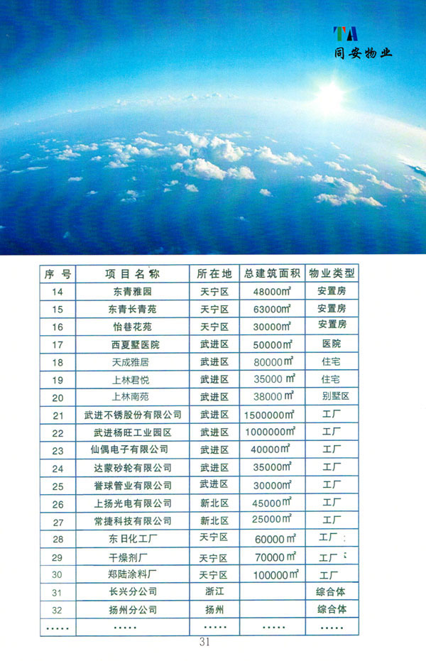 常州市同安物業(yè)管理有限公司注冊1999年,發(fā)展至今已有多年歷史,本公司坐落于美麗的龍城常州,秉承“融聚無限未來”的核心理念,融專業(yè)認才,匯優(yōu)質資源以”專心,細心,耐心”的服務態(tài)度,為客戶打造“安心,順心,稱心”的服務感受。 公司始終以“打造中國最值得信賴和最值得尊重的物業(yè)管理服務集成商”為愿景自我鞭策,不斷前行。同安物業(yè)以客戶滿意為終極目標,不斷加強”崗位資格認證能力,人才招聘與職業(yè)化培訓能力,產品策劃與管理設計能力,品質監(jiān)督與管控能力,技術更新與運營優(yōu)化力“五大專業(yè)能力的培養(yǎng)和提升,實現“精品化管理,專業(yè)化服務”。 公司發(fā)展至今,員工總數近千余人,大專以上學歷200多人,中高級技術人員160人,維修人員140人,物業(yè)管理師80名,公司接管面積達3100000多平方米,設涉及住宅小區(qū),別墅,大型游樂場,公園,醫(yī)院,廠區(qū),商業(yè)等。公司的工作管理逐步導入ISO9001質量體系和ISO4001環(huán)境管理體系和GB/T28001職業(yè)健康安全管理體系,嚴格按照質量體系的標準執(zhí)行。