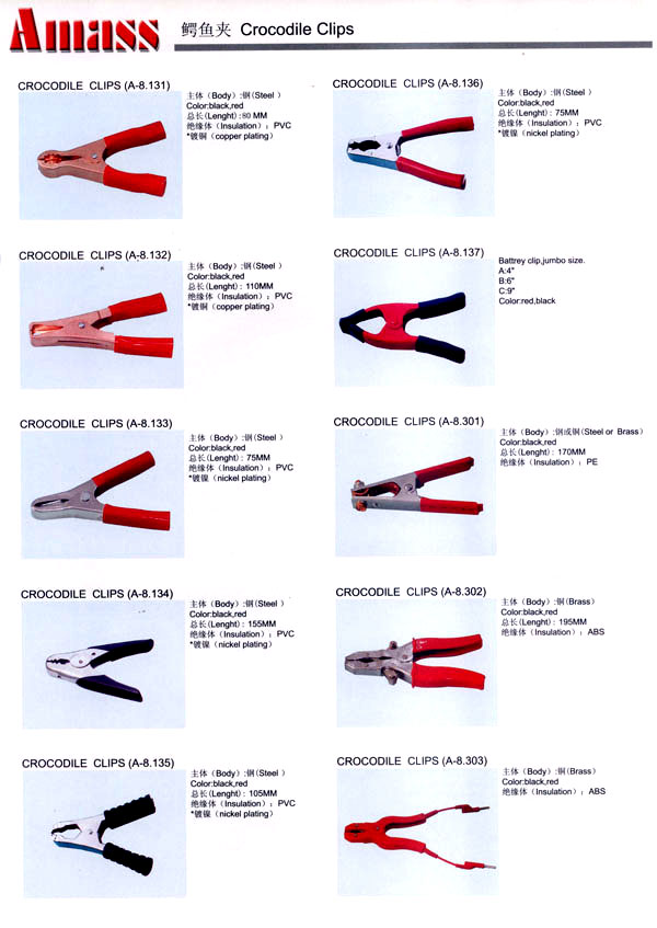 本公司專業(yè)生產(chǎn)各類香蕉插頭,香蕉插座,接線柱,電瓶夾,鱷魚夾,測(cè)試導(dǎo)線,測(cè)試筆等。產(chǎn)品分2mm/2.5mm/3mm/3.5mm/4mm五大系列,百余種款式, 各種香蕉插廣泛用于儀器、儀表、電力測(cè)試、教學(xué)、玩具,視聽設(shè)備、醫(yī)療儀器,保健產(chǎn)品等領(lǐng)域。公司技術(shù)力量雄厚,生產(chǎn)工藝先進(jìn),產(chǎn)品遠(yuǎn)銷港、臺(tái)、歐美,并與飛利浦等國(guó)際品牌配套。公司本著精益求精的理念,歡迎新老客戶光臨。